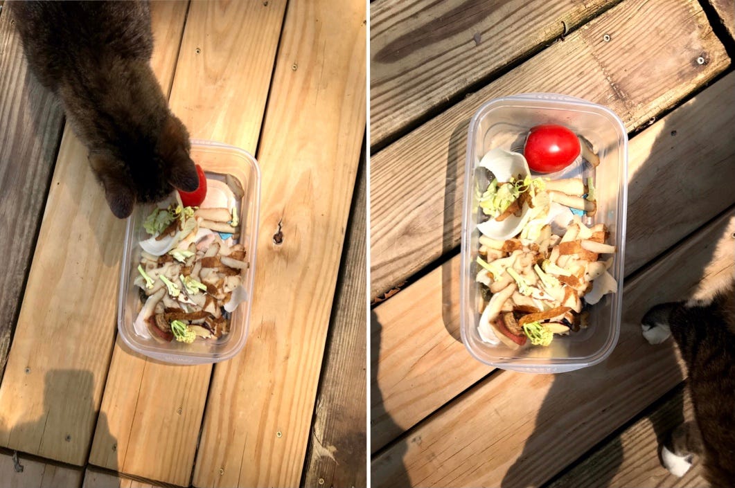 compost in the ravine (and as I tossed, some eggshells got latched onto the branches and never came down…)